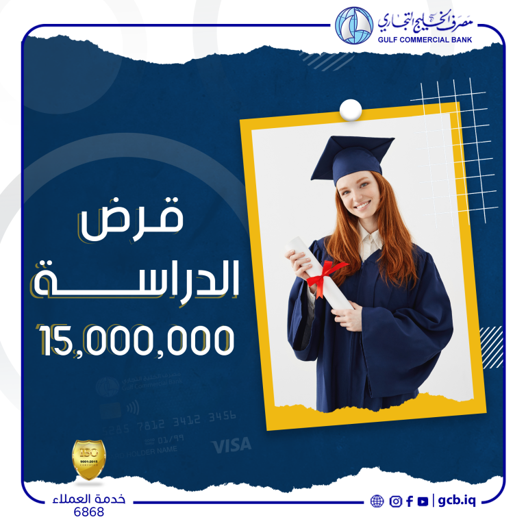 لا تشيل هم دراستك .. مصرف الخليج التجاري يوفرلك قرض الدراسة الذي يصل للـ 15,000.000 مليون دينار . الفرع الرئيسي …