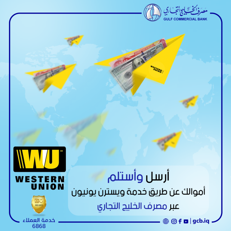 أرسل وأستلم أموالك عن طريق خدمة #ويسترن_يونيون عبر مصرف الخليج التجاري الفرع الرئيسي : بغداد - شارع السعدون - مقابل بدالة العلوية …